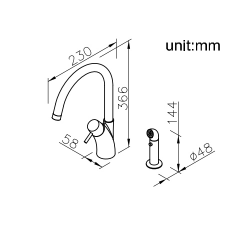 1.可旋轉使用的出水口,(通過50,000次的壽命測試)。